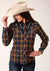 Roper Women's Snap Fancy Applique Navy, Blue & Brown Plaid Shirt