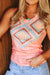 This soft pink sleeveless tank top features a striking Aztec-inspired stripe print that adds a unique touch to your casual wardrobe. Crafted with a scoop neckline, it offers a comfortable and flattering fit perfect for layering or wearing on its own. The breathable fabric ensures lightweight wear, making it ideal for warm weather or active days. Its versatile design blends traditional patterns with modern style, suitable for both relaxed outings and more dressed-up looks. Elevate your everyday essentials with this eye-catching yet effortlessly wearable top..