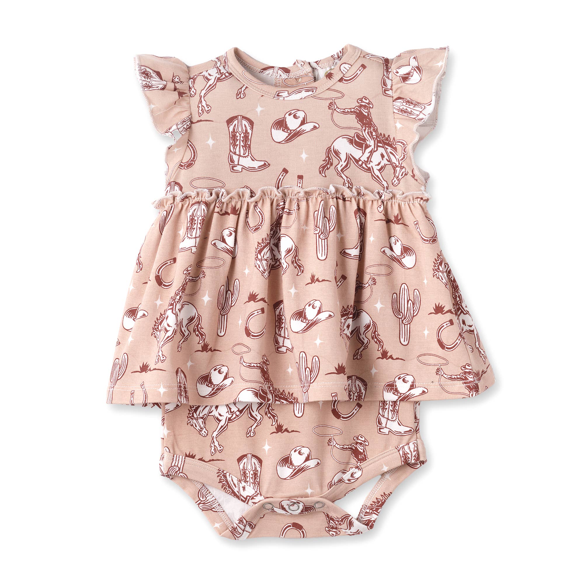Wild Wrangler/Pink Bamboo Cowgirl Western Skirted Bodysuit